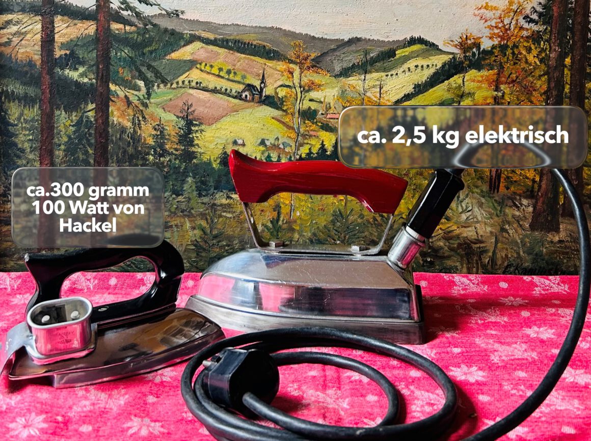 Die meisten kennen sicherlich die elektrischen Bügeleisen aus den sechziger oder siebziger Jahren in der eigenen Familie. Diese Bügeleisen wurden über ein Thermostat gesteuert und schalteten automatisch beim Erreichen einer bestimmten Temperatur ab. Da wurden beim Bügeln oft auch feuchte Tücher verwendet, um empfindliche Stoffe vor zu starker Hitze zu schützen oder auch die Glätte des Stoffes zu erhöhen. Neben der Hitze spielte bei den Bügeleisen auch das Gewicht eine Rolle.